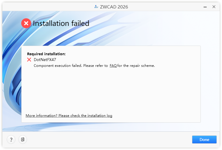Ak sprievodca inštaláciou zobrazí výzvu Inštalácia zlyhala (Installation Failed), kliknite na tlačidlo Hotovo (Done) pre ukončenie procesu a počkajte, kým sa problém nevyrieši, aby ste mohli znova nainštalovať.