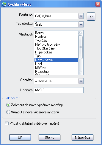Pri úpravách výkresu potrebujeme často vybrať objekty, ktoré majú spoločnú