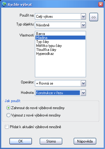 Pri výbere objektov väčších výkresov nám ZWCAD ponúka výber objektov pomocou dialógového okna Rychle vybrat obr. 32-4