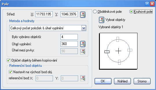 vyberte kruhové pole, klepnite na tlačidlo Vybrať objekty, vyberte
