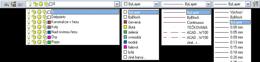 Štandardná hrúbka čiary ByLayer v počiatočnom nastavení pre všetky objekty je