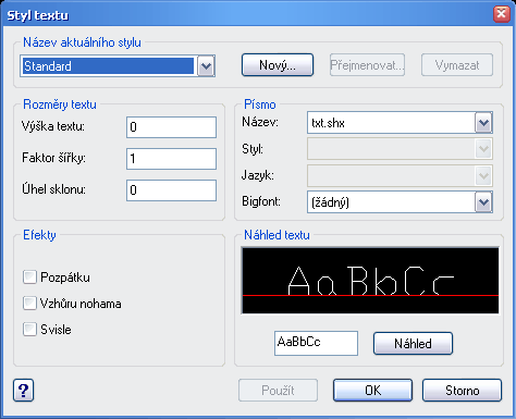 Pomocou štýlu textu definujeme vzhľad textu. O aktuálnom štýle textu pri kreslení nás informuje paleta nástrojov Styly /Menu - Zobrazit - Paleta nástroju...- Styly/ obr. 5-2.